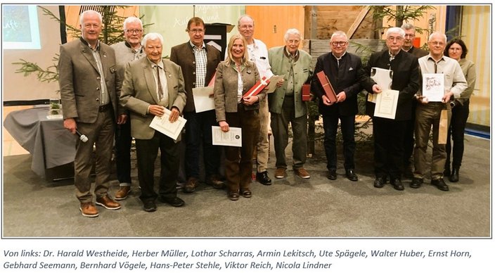 Für 40 Jahre: Anton Dreher (Bubsheim), Hans Glück (Kirchen-Hausen), Armin Lekitsch (Hausen o.V.), Wolfram Mack (Talheim), Herbert Müller (Spaichingen), Ute Spägele (Tuttlingen)
